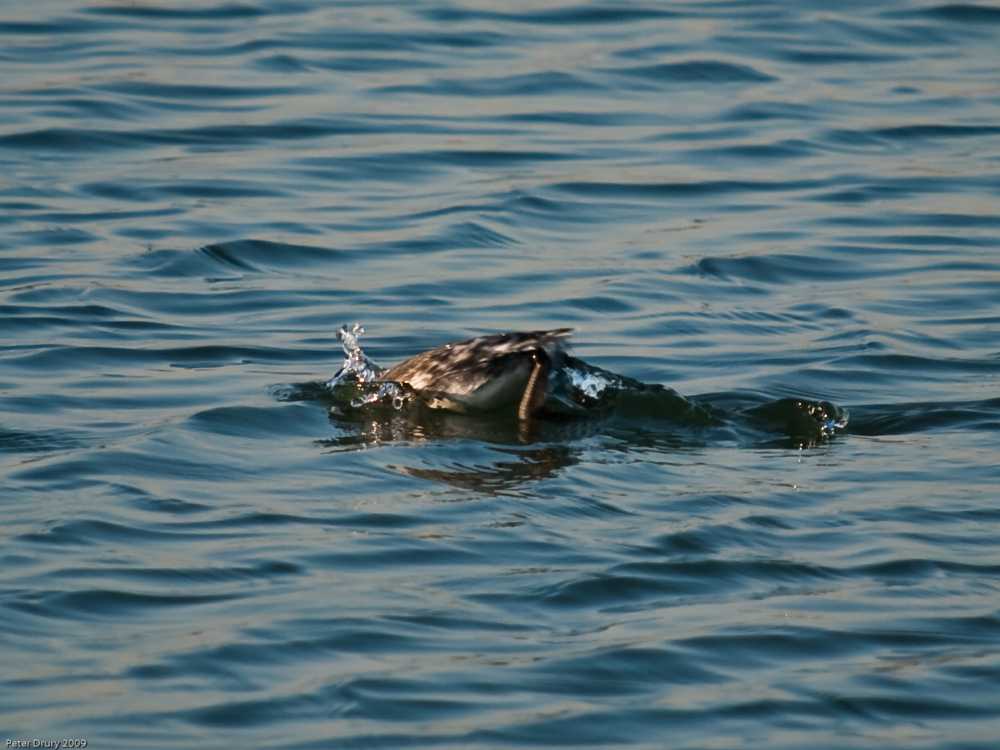 Horned Grebe (Podiceps auritus) This shows the Grebe diving and the position of the legs relative to the body. This makes them excellent swimmers but poor wolkers on land.